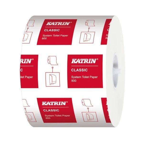 Soft effective quality toilet paper 100% recycled fibre 2-Ply, white For use with Katrin System Toilet Dispenser Very large roll size (800 sheets) & dispenser holds 2 rolls Suitable for high traffic areas Controlled dispensing, & self presenting sheets reduce consumption & improve hygiene All Katrin toilet papers are made from high quality fibers & have been proven, via Dissolving test 90 seconds, Metsä Tissue 02 method, to break down & dissolve quickly & efficiently in water, under normal usage conditions Certified under the Nordic Swan Eco Label and EU Flower